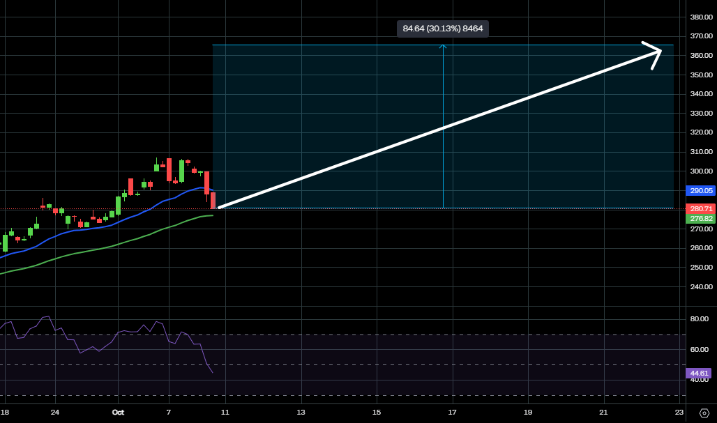 If we slap a 32x multiple (a modest premium given growth + margins) on that FY2026 EPS, we land right at a $365 price target. Thatâs about 30% upside from current levels.