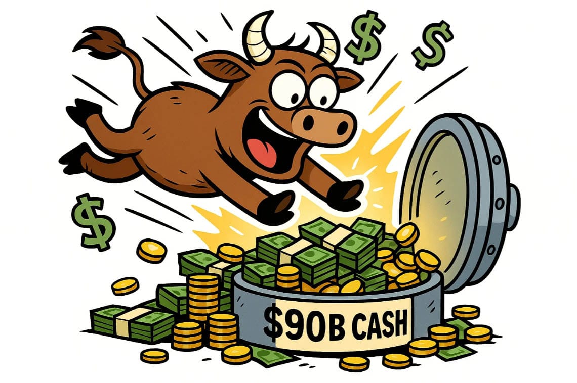 $90B+ in cash, 59% gross margin, 42% net margin.