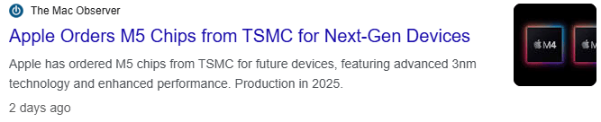 The pop today looks like a accumulation of lots of positives. Apple have placed some big orders for TSMCโs M5 chips, analysts have been upgrading the stock & a generally positive outlook on semiconductors.