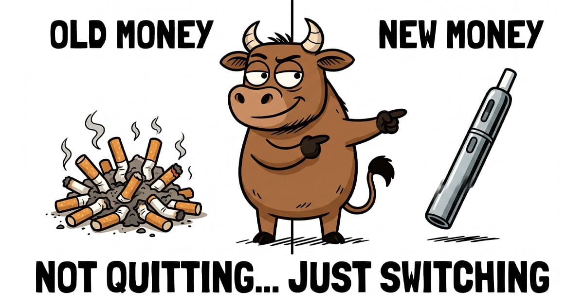 The market wasn't thrilled. PM, Altria $MO ( โผ 1.78% ), and British American Tobacco $BTI ( โผ 2.01% ) all dropped ~2% on Tuesday โ with investors spooked that "smoking cessation" and "tobacco company" are now appearing in the same sentence.