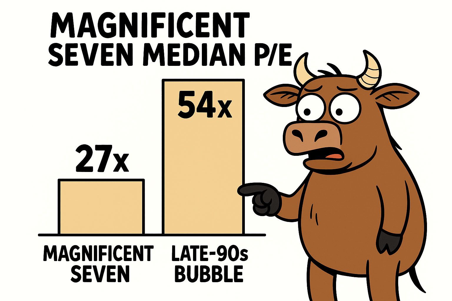 Investors are starting to sweat. The Magnificent Seven — those tech and AI giants carrying the market on their backs — have gotten really expensive. Some are whispering “bubble.”