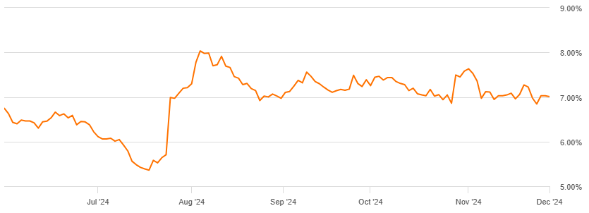 In short, if the stock keeps staying flat we’ll make 7%. That’s a pretty decent insurance policy. And if it makes the moves I’m hoping for the big fat dividend is a nice bonus.