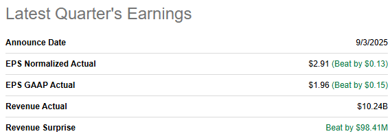 Revenue: $10.2B last quarter, up 10% YoY — slightly above guidance.