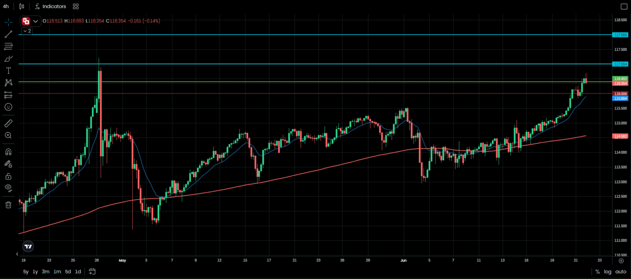 - Stop Loss: 116.00 (below recent swing low & psychological level)
