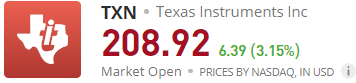 A 3%+ gain for TXN today on the back of CitiGroup upgrading their rating