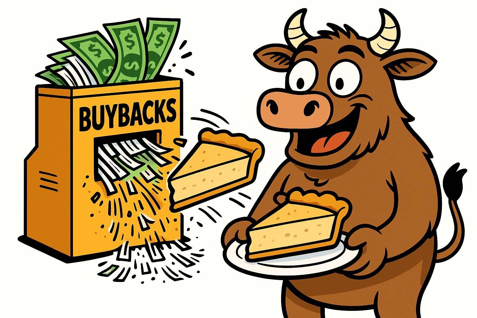 What does it actually mean for you? Your slice of the pie keeps getting bigger, even if revenue grows slowly.