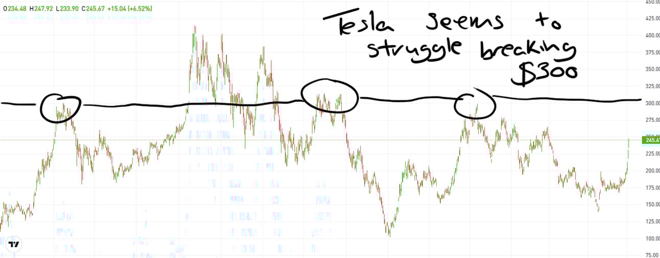 And I think the $300 target is super reasonable. Itβd bring us to a resistance seen in 2021, 2022 & 2023 so looks to be a solid psychological level.